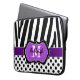This 15" chic and trendy personalized purple, black, and white zebra stripes and polka dots laptop sleeve has text boxes for you to add your name and monogram. ****PLEASE email me if you want a smaller size one made up, as selecting it on your own will cause the design and text boxes to slip. If you need help customizing this with your own info, please email niteowlstudio@gmail.com for help.