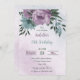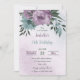 Unique birthday invitation featuring romantic dusty purple and blue flowers and green leaves