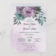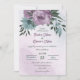 Unique wedding invitation featuring romantic dusty purple and blue flowers and green leaves