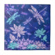 Purple Blue Flowers Dragonflies Ceramic Tile