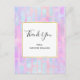 Thank you postcard with an abstract background pattern. Pink purple and blue watercolors make up this artistic design which features vertical rectangle shapes on a soft mottled background. A square layered over top with a faux gold foil border, your personalized text inside.