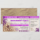 Seashells purple palm tree and sand beach theme boarding pass tickets Engagement Party invitations.