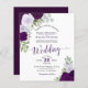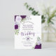 These affordable, budget friendly wedding invitations are the perfect choice for class, style, and beauty on a budget. The elegant design features hand painted watercolor roses in shades of dusty purple, plum, and violet, with a bevy of eucalyptus leaves and greenery. The typography features fancy script calligraphy, and the back is a deep marbled purple color. Wonderful way to invite your friends and family to share in your joy on your special day without breaking the bank.