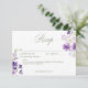 Capture the essence of rustic elegance with our beautiful boho floral wedding response card without dinner choices. Delicate bouquets of purple and lavender wildflowers, hand-painted in a loose style watercolor, are artfully arranged with sage green foliage. This design evokes a sense of natural beauty and romantic charm, perfect for your outdoor or garden wedding. Created by Simply Farmhouse Press.