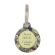 On the front- Personalize your pet's name in the message. OR, you can edit the text to reflect any information you might want a finder to know; such as a medical condition, medicines required, support pet status, rescue, timid, biter, etc.
