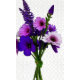 A bouquet of purple flowers including lavender and various petunias, arranged with green stems and leaves. The flowers display different shades of purple, creating a vibrant and colourful composition against a transparent background.