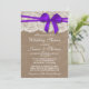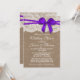 Purple Bow Rustic Burlap & Lace Wedding Shower Invitation