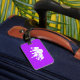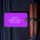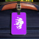 Luggage tag with a silhouette of a bowling ball knocking down pins. This design is available in different colours and on other products at my store. Customize it with a name, address, and phone number.