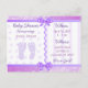 Purple bows, stripes and polka dot baby girl Baby Shower Invitation postcard. Quick and cheapest, yet adorably cutest way to affordably invite people to your baby shower! Just personalize this postcard by adding in your party's information in the customize area!