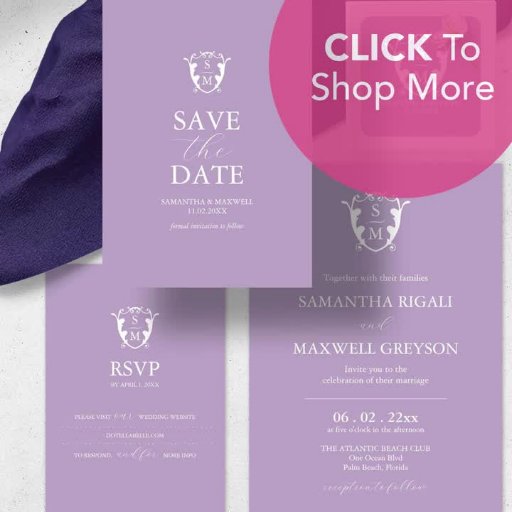 These purple bridal shower invitations feature a monogram crest. Use the template fields to add your personalized information. To see the matching wedding stationery suite visit www.zazzle.com/dotellabelle