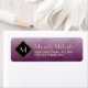 Ajoutez une touche d'élégance avec ces étiquettes d'adresse de retour en monogramme violet et noir élégantes et élégantes. Cette conception simple et sophistiquée de dégradé brossé avec un cadre moderne en forme de losange avec une bordure en or peut être personnalisée en ajoutant votre initiale monogrammée. Impression plane, NON métallique.