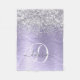 Purple Brushed Metal Silver Glitter Monogram Name Fleece Blanket