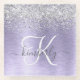 Purple Brushed Metal Silver Glitter Monogram Name Glass Coaster