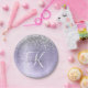 Purple Brushed Metal Silver Glitter Monogram Name Paper Plate