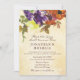 Christian inspirational fall wedding invitation depicts a beautiful rustic autumn watercolor floral with purple, burnt orange and yellow flowers and greenery. It features Bible Verse Genesis 2:24, "And the two shall become one."