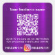 A purple faux metallic looking background. Personalize and add your business name, your own qr code to your Instagram account and a text. With the text x2: Follow us!