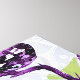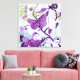 Original design created with a vintage illustration with purple butterflies sitting on a branch of leaves and a light blue floral pattern background.