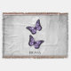 Add a touch of colour to your living or bedrooms with a Purple Butterfly Floral Personalized Throw Blanket. Blanket design features a pair of vibrant butterflies resting on a white floral vine against a light grey grunge background. Additional gift items available with this design as well as a variety of colours.