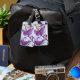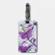 Original design created with a vintage illustration with purple butterflies sitting on a branch of leaves and a light blue floral pattern background.