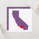 A pretty violet purple California map shape for a contemporary destination wedding invitation.