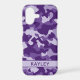 Customize this purple camouflage iPhone 17 case with your name in a trendy modern CAP font in dark purple on light purple. It's so modern, girly and trendy! Perfect for any country girl!