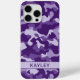 Customize this purple camouflage iPhone 15 pro max case with your your name in a trendy modern CAP font in dark purple on light purple. It's so modern, girly and trendy! Perfect for any country girl!