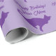 Purple cat silhouette Birthday wrapping paper. Personalize with custom text and colours. Cute sitting kitty design.
