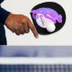 Purple Chameleon with a Circular Frame Ping Pong Paddle