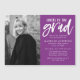 Invite guests to celebrate the graduate with our Cheers to the Grad graduation party magnetic invitations. The magnetic graduation party invites feature the graduate's vertical photo on the left. "Cheers to the grad" is displayed in a white, hand-lettered brush script with a purple background. Personalize the design by adding the graduate's name, school name, graduation year, and party details.