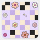 Purple Chequered Daisies Retro Flower Check Square Sticker