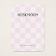 Earring display card featuring a cute lilac chequered pattern. Template holes can be adjusted or deleted, as well as all your company information. Add your social media or website to the bottom.