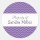 Purple chevron personalized sticker, perfect for labelling books and school supplies!