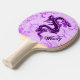 Custom ping pong paddle done in a lavender and purple Fleur background, with graphics of a purple Chinese style dragon, on both sides. Personalize the purple text to read what you want. Makes a great gift idea for her.