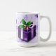 Enjoy your morning coffee during the holiday season with this festive Purple Christmas Gift Coffee Mug. Coffee mug design features a vibrant purple Christmas gift adorned with holly berries and falling snowflakes against an elegant scroll and leaves background with the saying "My cup of cheer". Additional gift and holiday items available with this design as well.