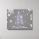 Make your walls festive this holiday season with a Purple Christmas Tree and Snowflakes Stretched Canvas Print. Canvas print design features a vibrant artistic Christmas tree with falling snowflakes and a dark grey background. Additional gift and holiday items available with this design as well.