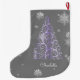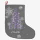 Add a festive touch to your fireplace mantle this holiday season with a Purple Christmas Tree and Snowflakes Stocking. Stocking design features a vibrant artistic Christmas tree with falling snowflakes and a dark grey background with a space you can add your name for personalization. Additional gift and holiday items available with this design as well.