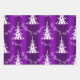 This purple Christmas wrapping paper set features three very distinct purple patterns for your Christmas gift wrapping: a contemporary pattern of white Christmas trees with the words 'Be Merry' in white scattered around very modern-looking white Christmas trees, the second sheet has an adorable pattern of little snowmen dressed in purple velvet top hats and vests, and the third purple Christmas wrap features an elegant, luxe pattern of gold Christmas stars (or snowflakes) on a purple gradient background.