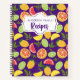 A personalized family name recipe book with citrus fruit pattern featuring colourful oranges, lemons, tangerines and grapefruit.