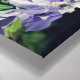 Delicate lavender purple clematis flowers in full bloom growing along a wooden fence happy in the sunlight abstract frame created from my original photo create your own photo canvas print. Flower photography by Susan.