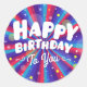 Purple Colour burst happy birthday to you Classic Round Sticker