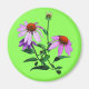 A distinctive image of buds and blossoms of purple coneflower against a bright green background. Stick one on your refrigerator, file cabinet, dishwasher, or your own favourite metal surface.