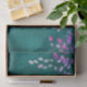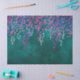 This design showcases pink and purple botanic-shaped confetti on a teal background. Great for decoupage crafts, paper artwork, or wrapping gifts.