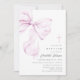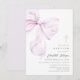 Minimal baptism invitation that features an elegant purple bow and elegant typography.