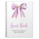 Pretty birthday party guest book featuring a purple coquette bow ribbon. The words can be changed to suit your own details or requirements