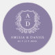 Purple Crest Floral Modern Monogram Wedding Classic Round Sticker