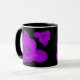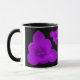 This fabulous floral mug features a photo of a crocus flower that has been digitally altered by adding a filter to turn the flower purple. There are two of these flowers, one upside down and the other the right way up. The flowers are on a black background. The design is on both sides of the mug. It is shown here on a black ringer mug but is also available on other styles and colours of mugs, including travel mugs and frosted glass mugs.