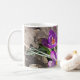 If you are waiting for the first signs of spring after a long cold winter, then you will love this stunning purple crocus photo image. With vivid purple petals and orange stamens, these gorgeous crocuses are blooming among the fallen leaves of the woodland floor creating a colorful spring floral design.