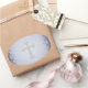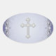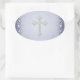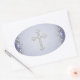 Elegant purple damask flower scroll and cross invitation and announcement envelope seals.