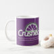 Inspired by a popular fizzy drink, this fun purple coffee mug looks like a vintage soda logo. The focal point is the word "Crushed" in green and white text. The Bible verse 2 Corinthians 4:8-9 is featured around the word "Crushed" which is part of the verse. The entire verse reads "We are hard pressed on every side, but not crushed; perplexed, but not in despair; persecuted, but not abandoned; struck down, but not destroyed." Not a fan of purple? No problem; change the background colour to any colour of your choice.