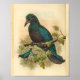 1877 vintage illustration of Curl Crested Manucode. With purple and blue feathers sitting on a tree branch.